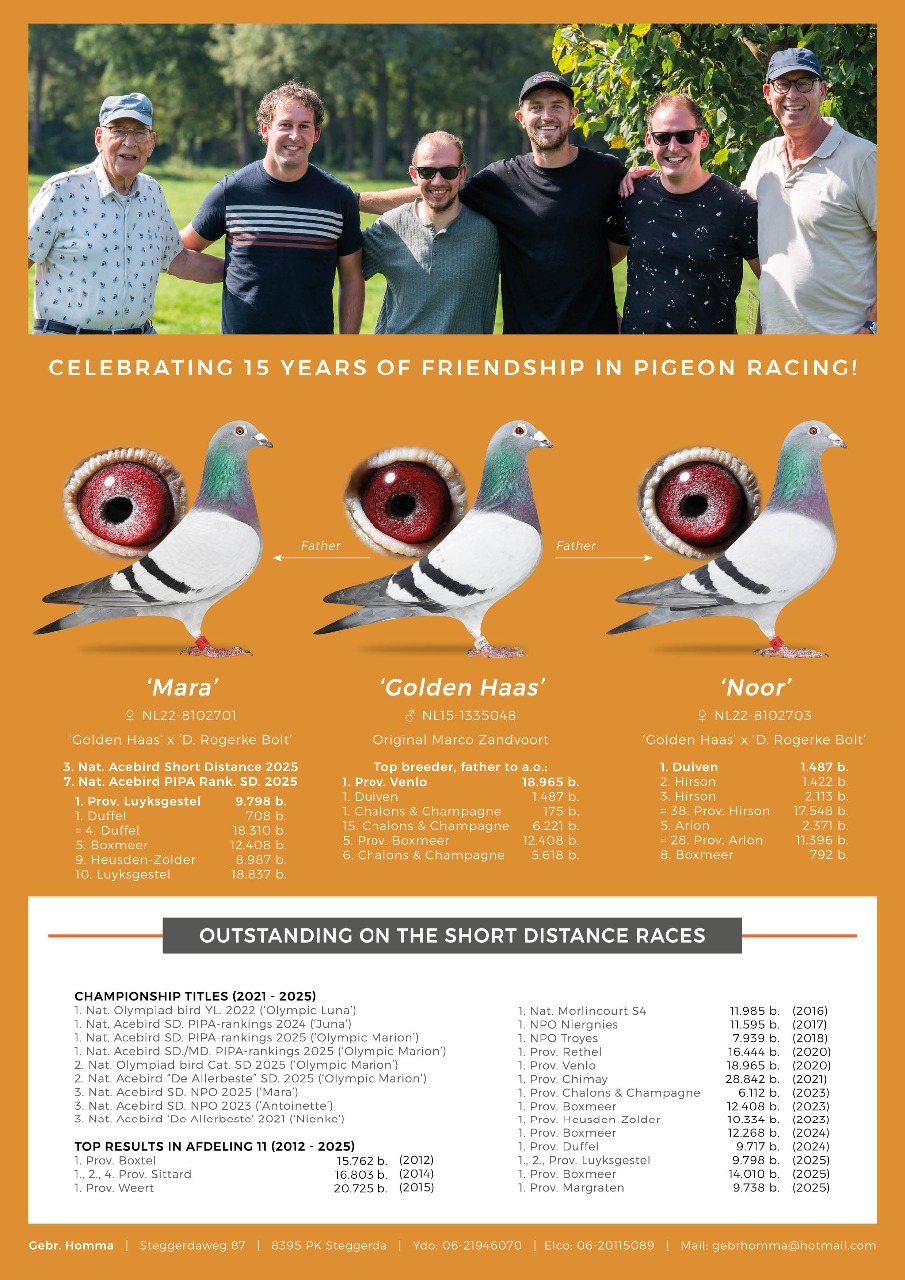 Postduivenvereniging - Gevleugelde vrienden Jubbega - Verkoop Maart 2026 - Gebr. Homma